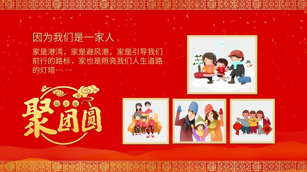 喜迎春节除夕年夜饭年味食足聚会相册PPT模板
