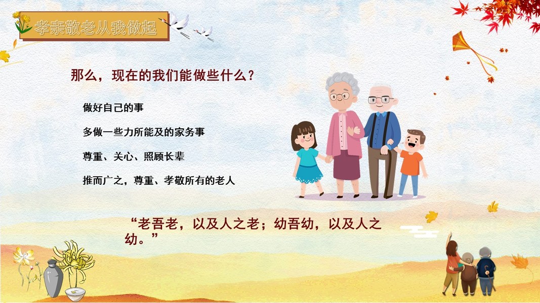 卡通秋季清新九月九重阳佳节孝亲敬老主题班会PPT模板