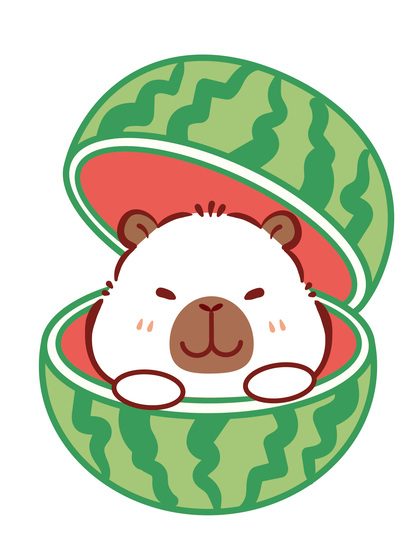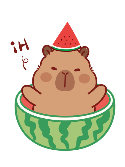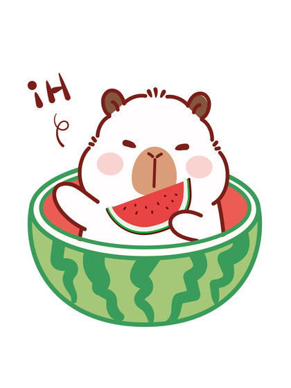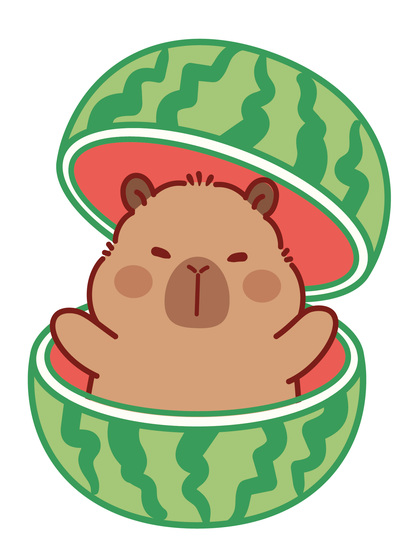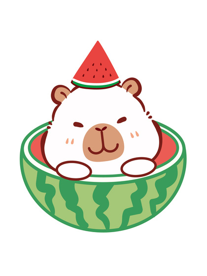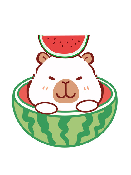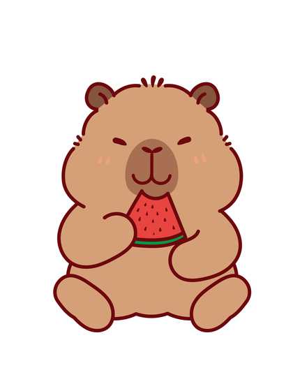 卡皮巴拉吃西瓜夏天系列插画卡通可爱图片设计头像