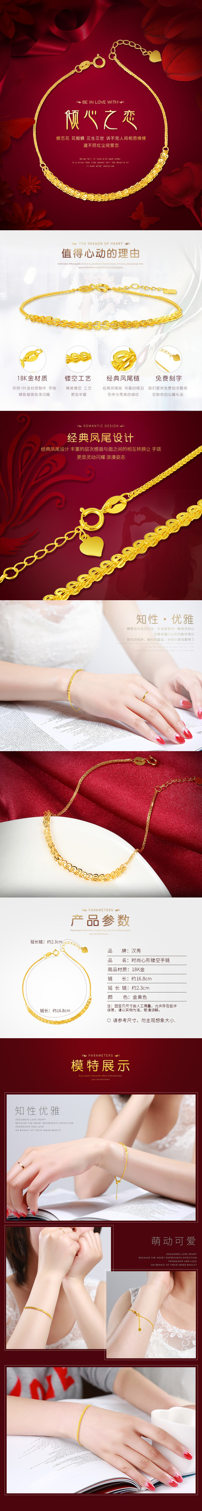倾心之恋——珠宝饰品 18k金黄金色手链 海报 详情页