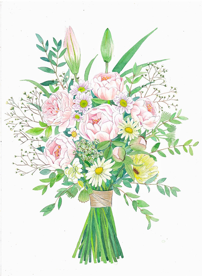 水彩花卉捧花花束