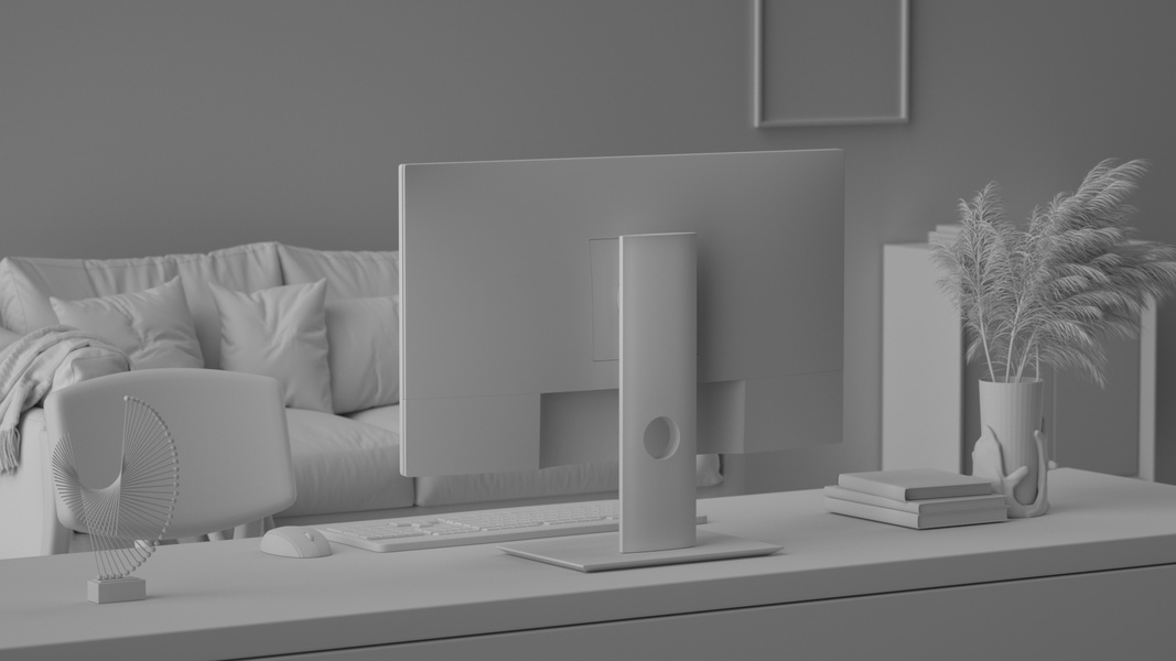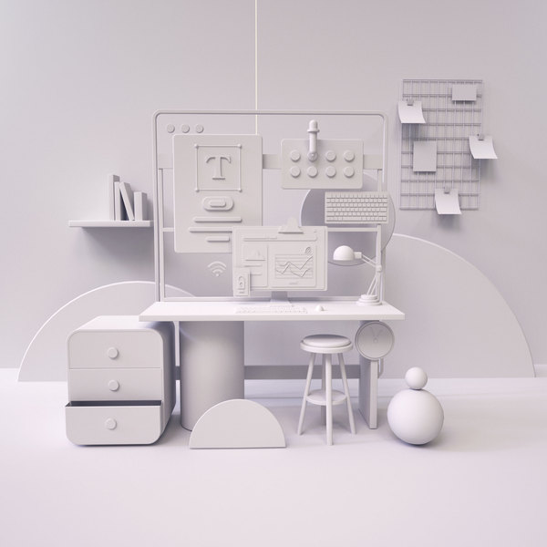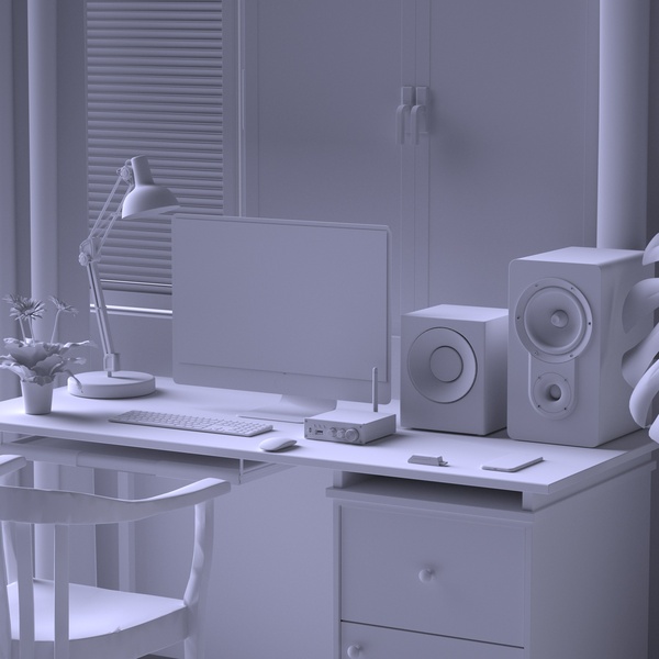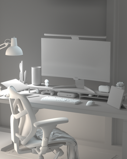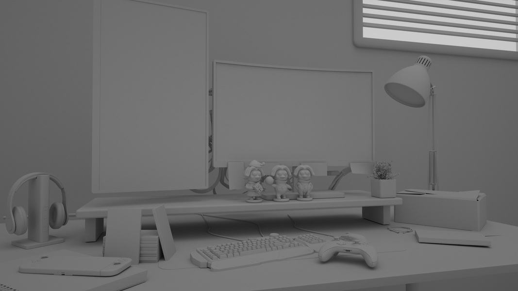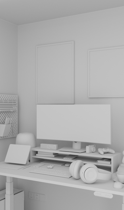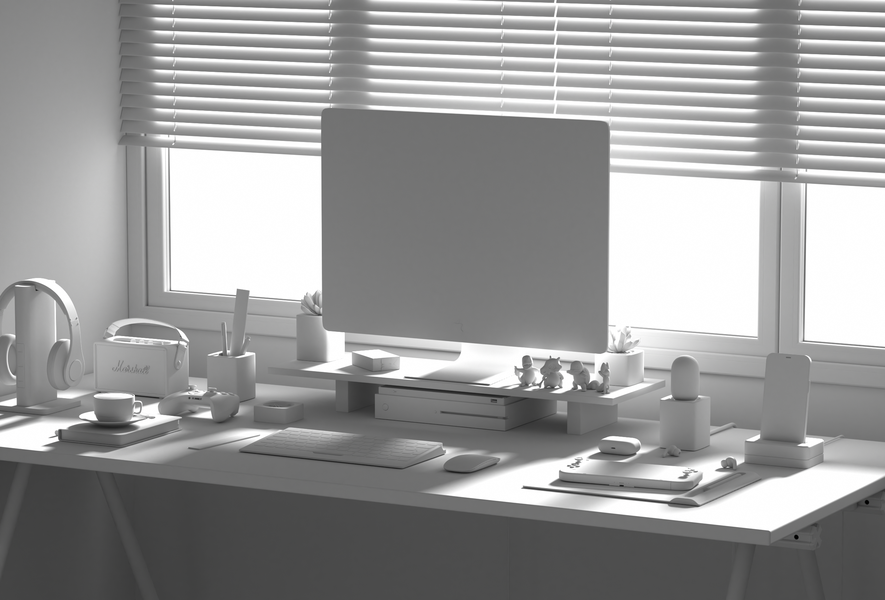 电脑工作桌面写实氛围场景渲染