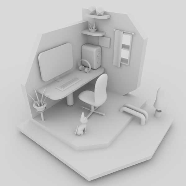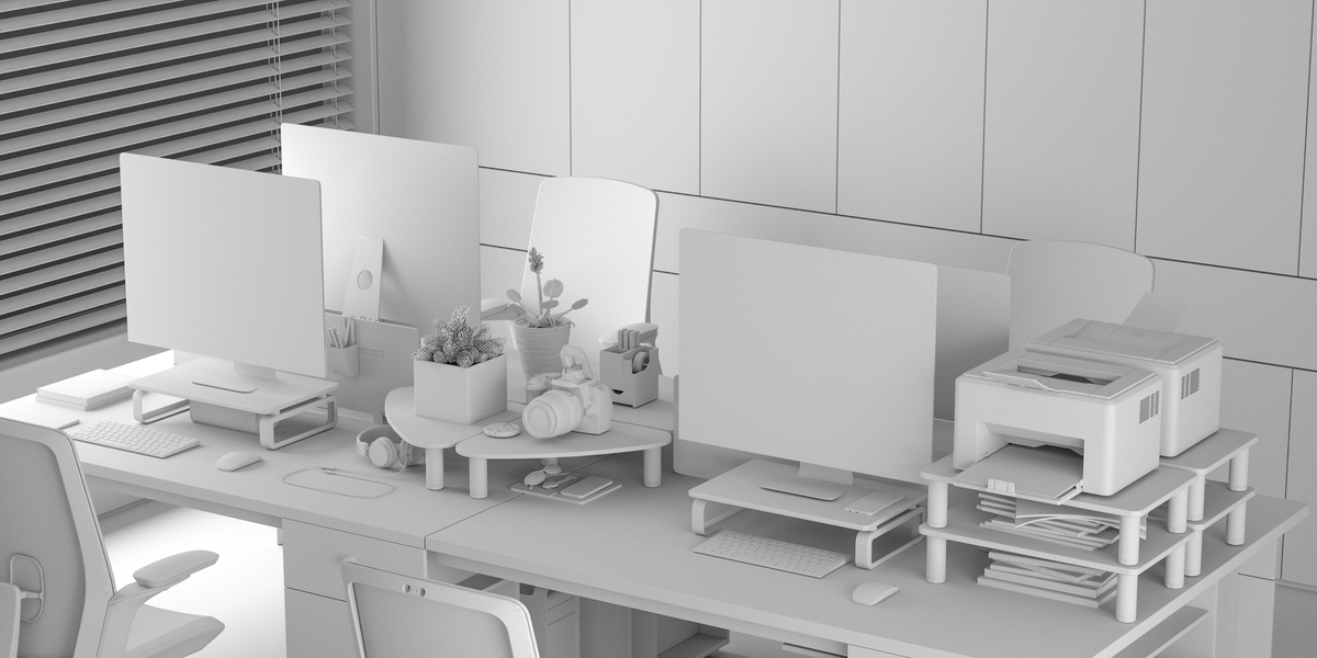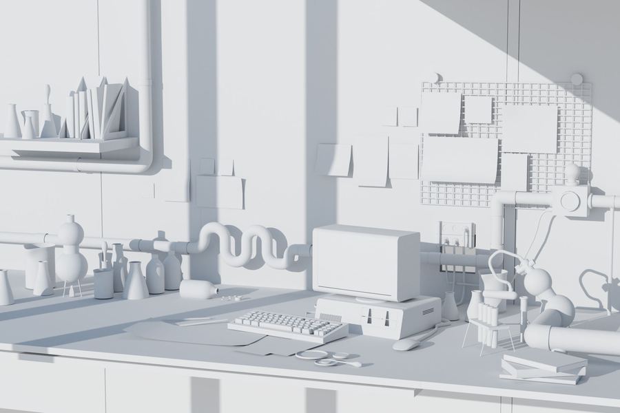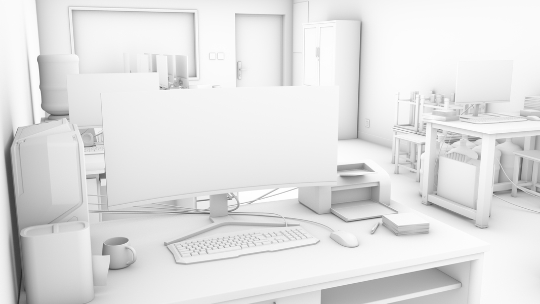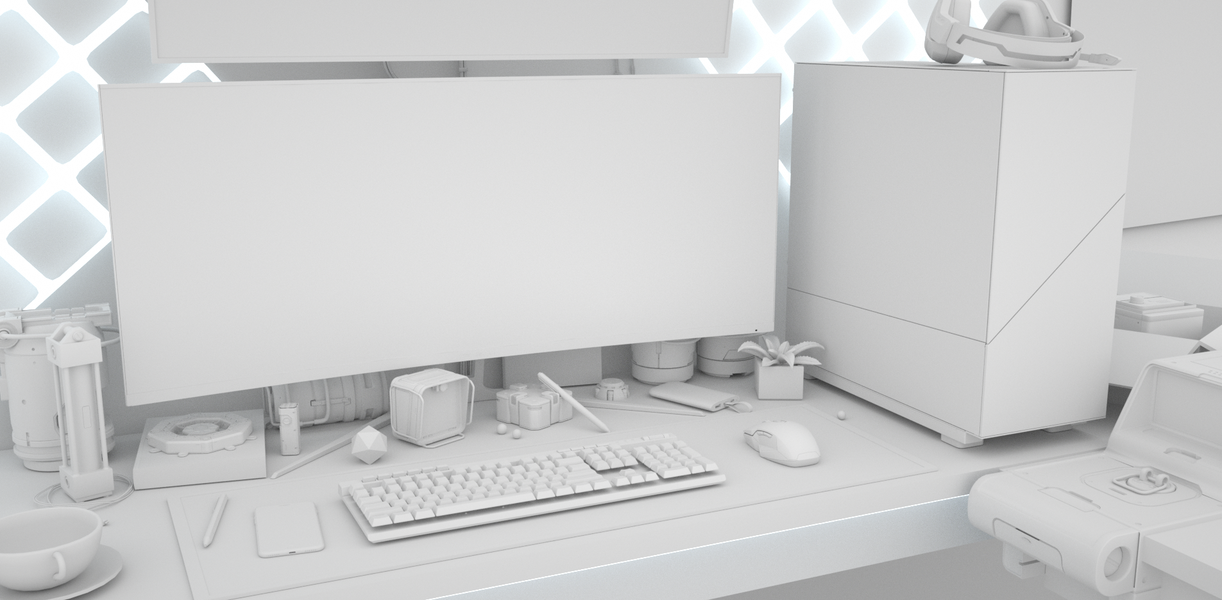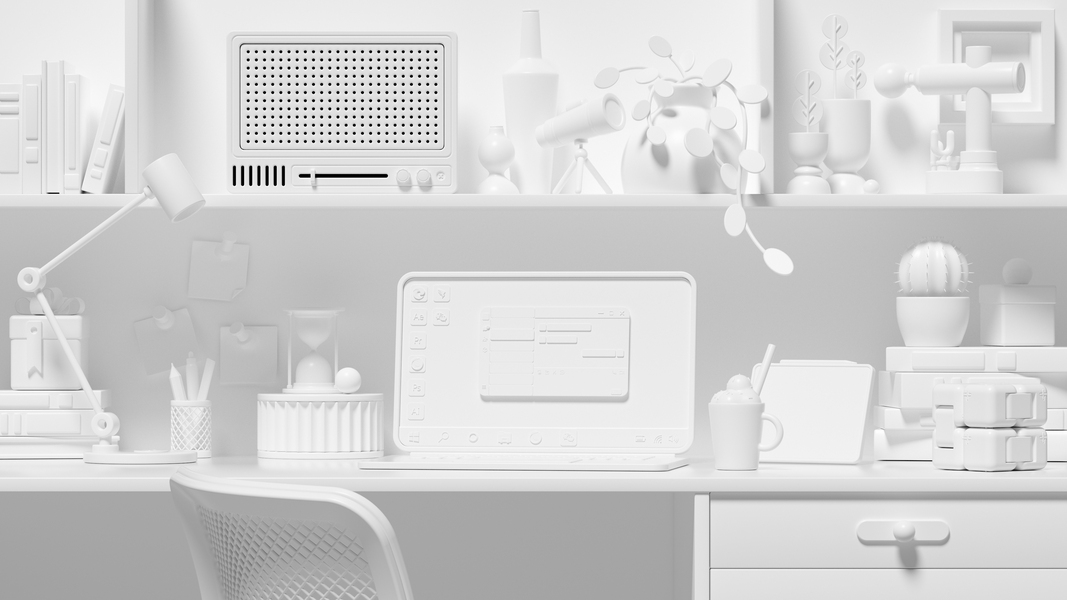 电脑工作桌面写实氛围场景渲染