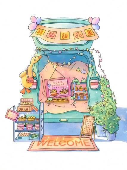 车尾箱集市治愈店铺 | 小场景插画(合集)