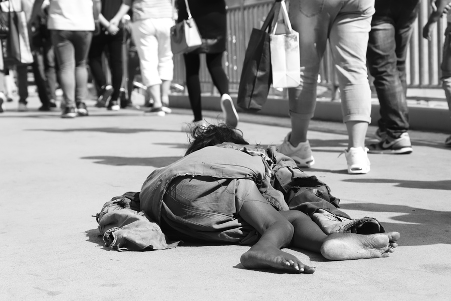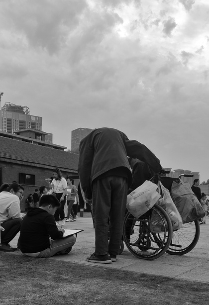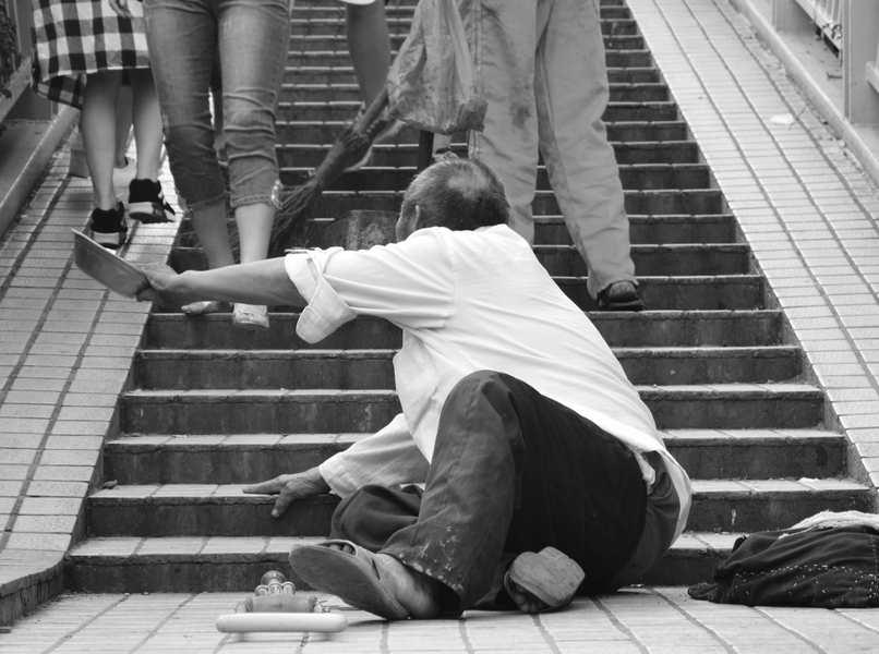 人群中的乞討者