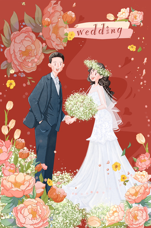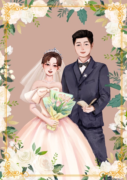 手绘水彩婚纱请柬新人肖像奥运五金王邹凯周捷婚礼画师