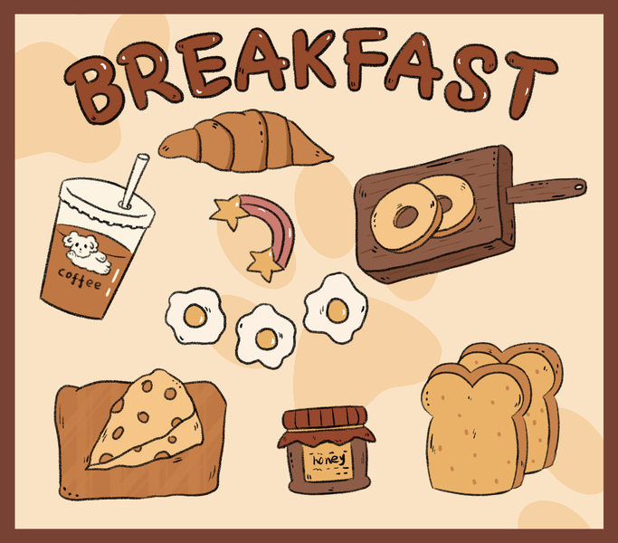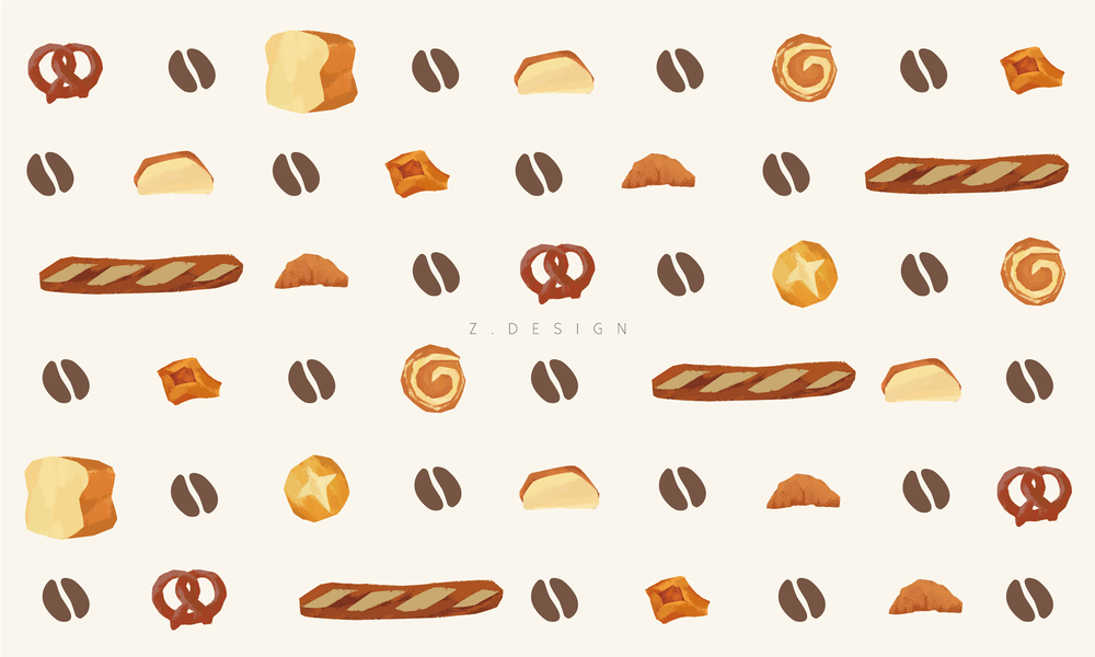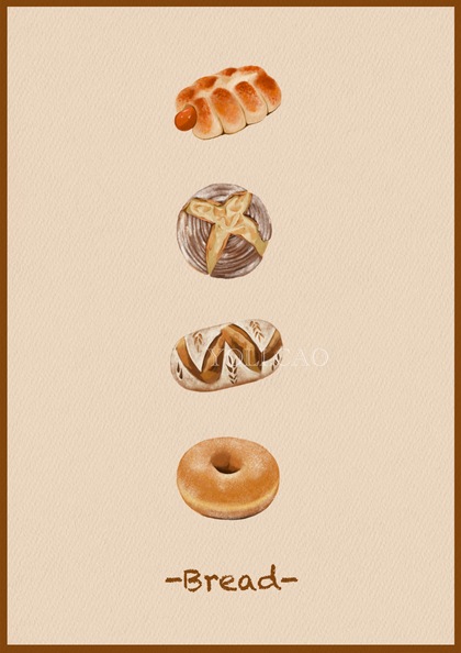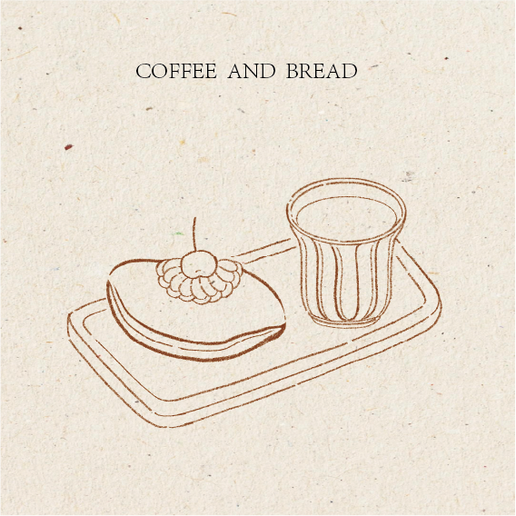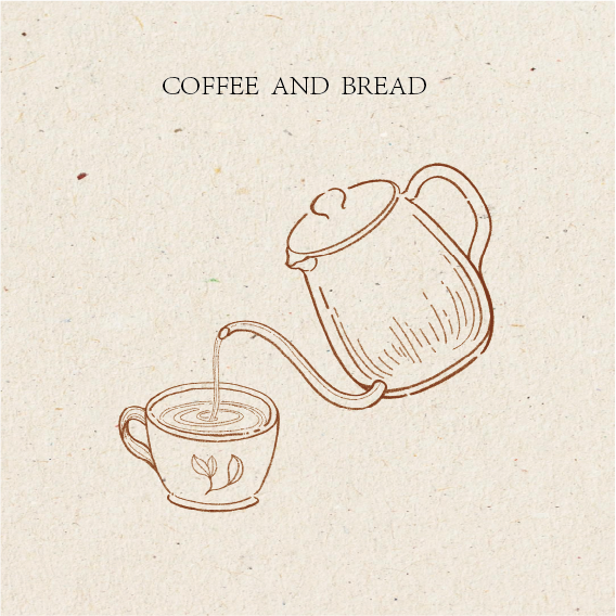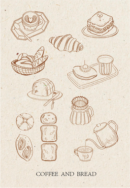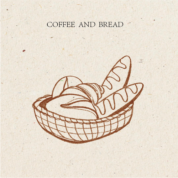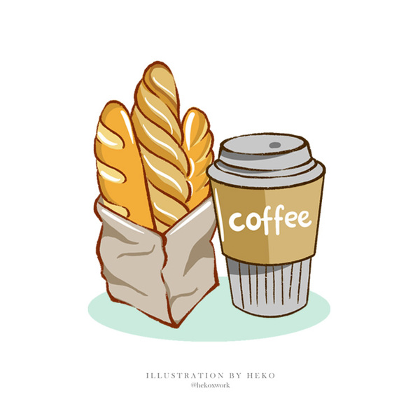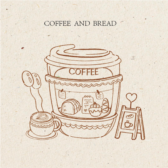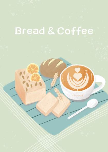 手绘食物~咖啡与面包蛋糕的完美搭配