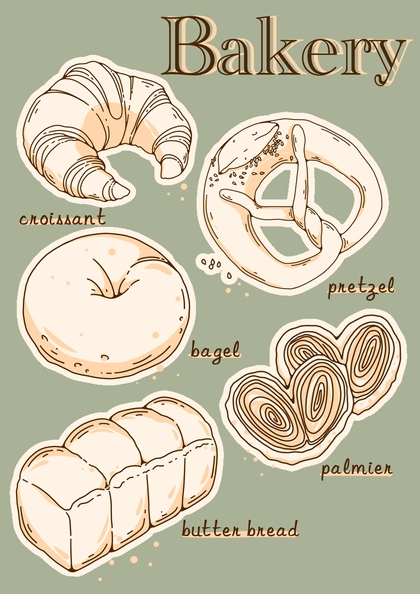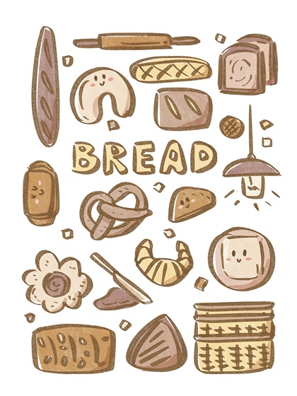 原创手绘|美食手绘练习🍞🥯🌭🍩