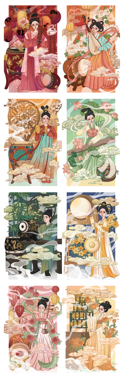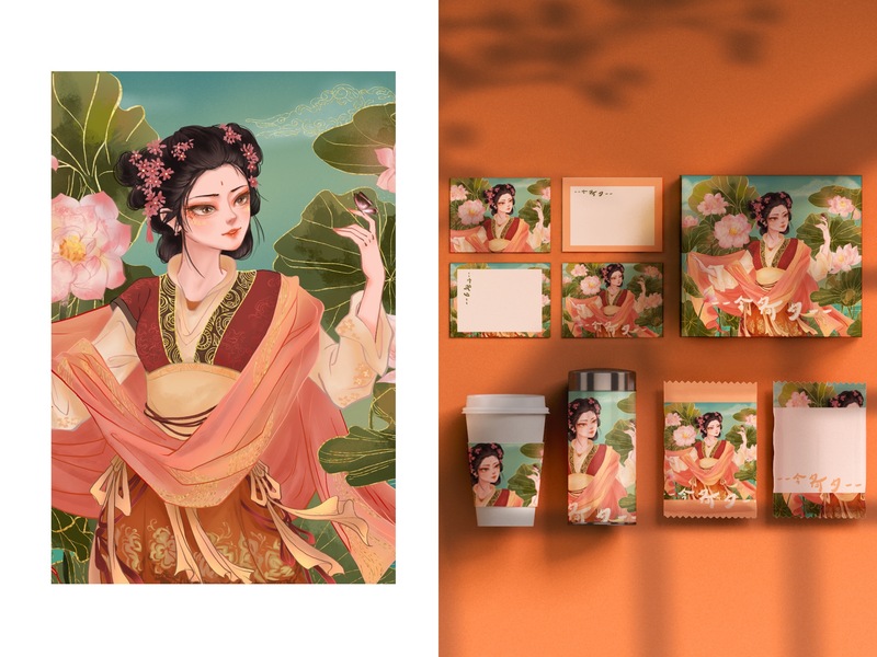 原创国潮古风人物 |果酒包装|蜜桃 青梅 荔枝|美食插画
