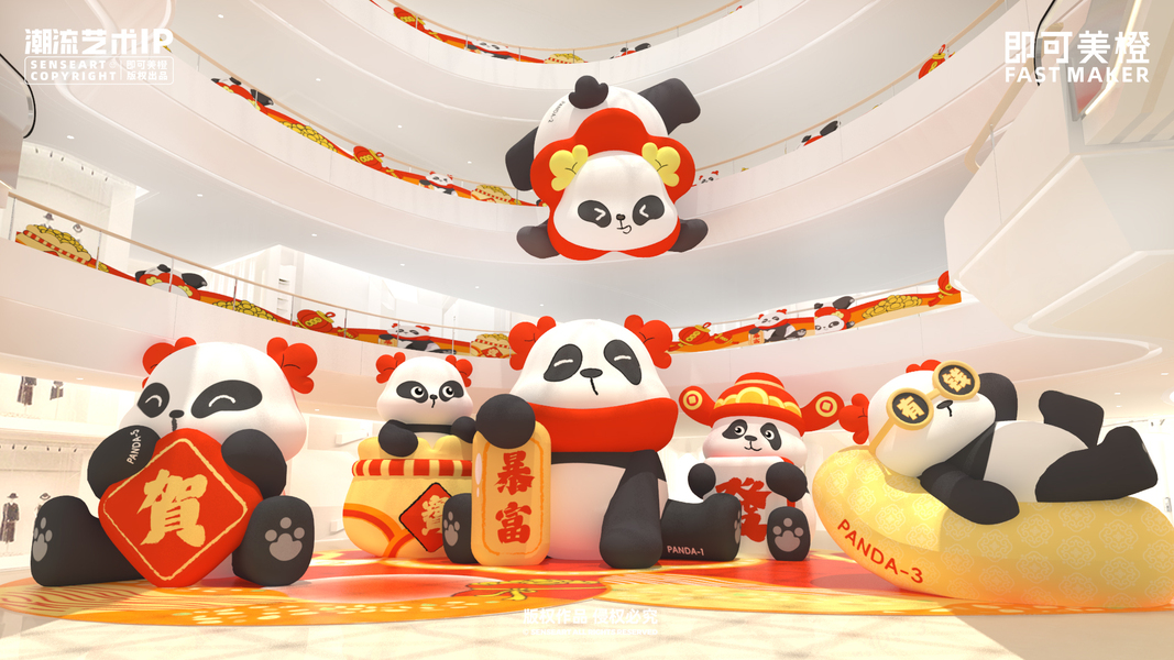 开业周年庆美陈方案“熊猫盼崽”幸福滚滚而来系列