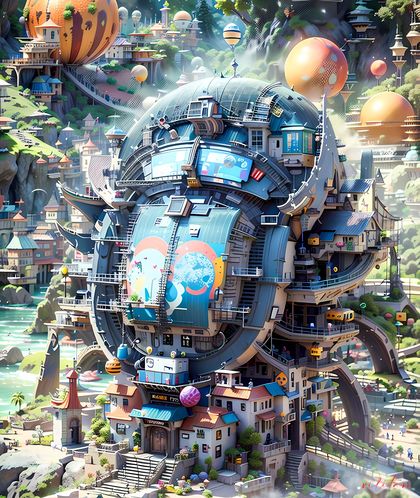 奢华金色系乐高城市摩天轮与小镇3D模型