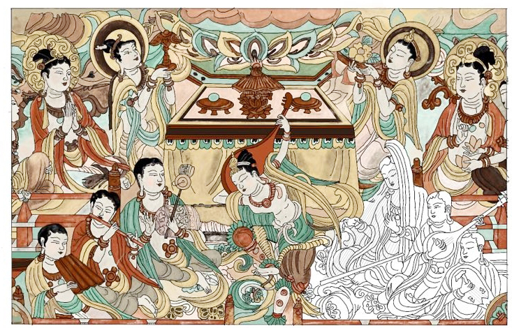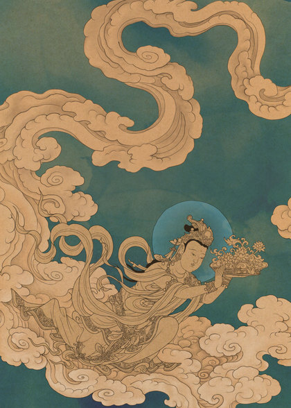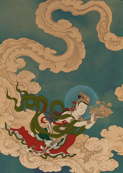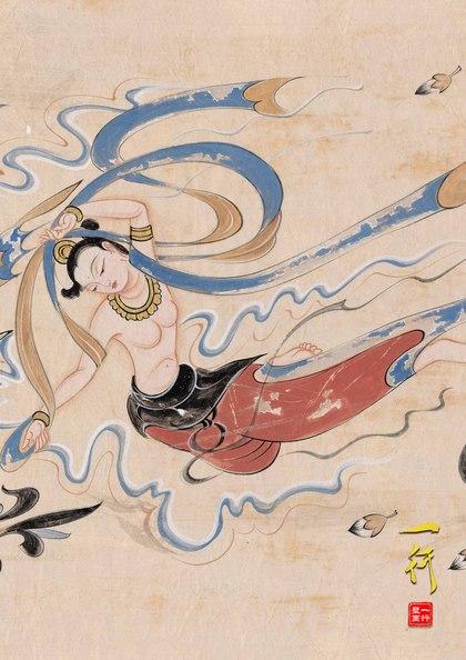工笔画临摹法海寺壁画局部《捧花飞仙》