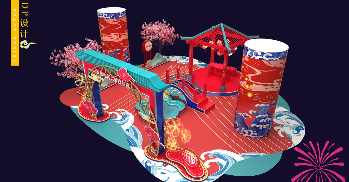 龙年新年圣诞IP美陈-为爱接龙-让爱无限