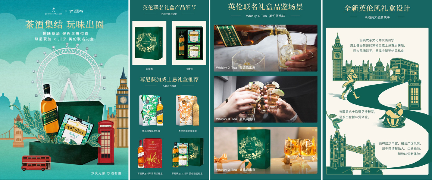 尊尼获加x川宁英伦联名礼盒 插画包装设计