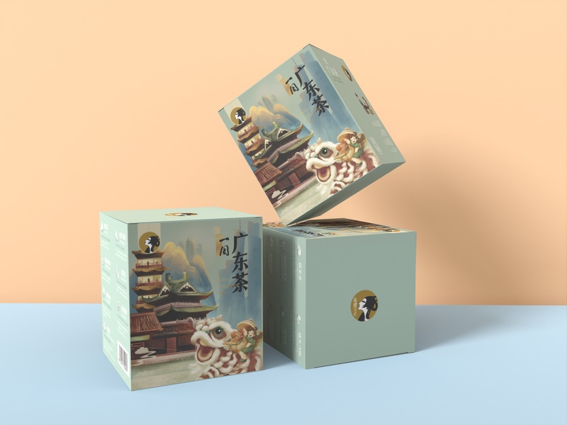 茶理宜世《一周广东茶》新中式插画茶盒及纸杯包装设计