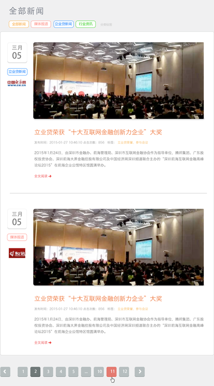 立业贷网站的关于我们 概览页 列表页 内容页 的部分页面