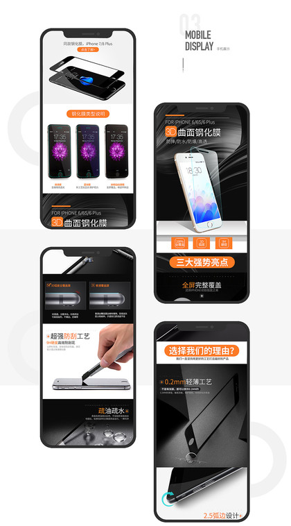 钢化膜详情页设计 数据线 手机壳 磨砂 数码3C 手机