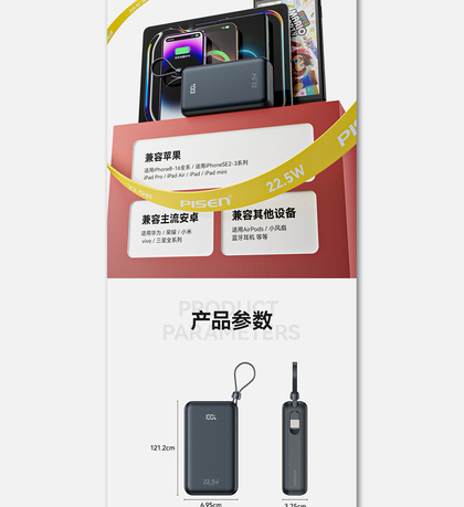 自带四线数显移动电源