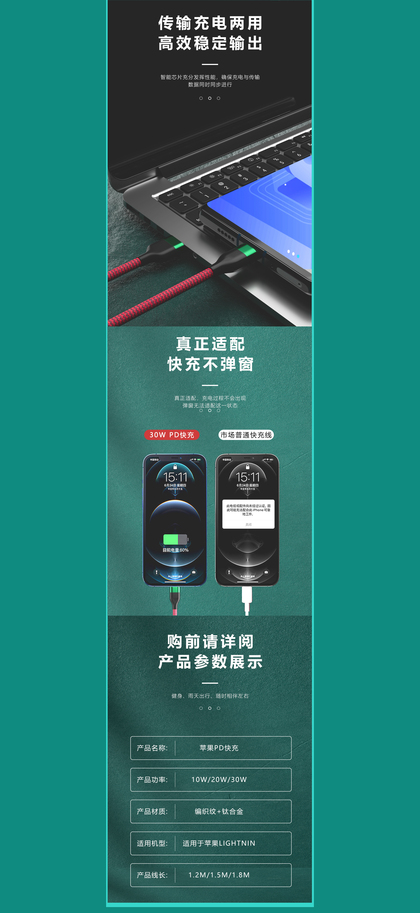 无线蓝牙耳机详情页+苹果快充数据线详情页X2