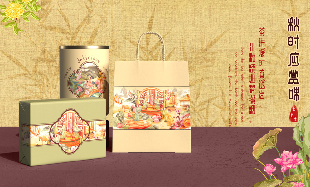 橘猫设计x中秋荷荷美美中秋月饼礼盒包装手绘插画