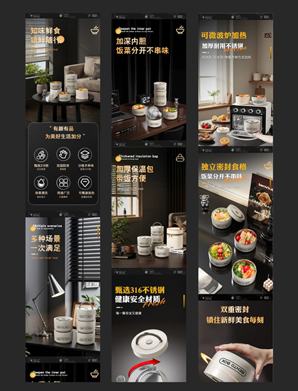 【不锈钢饭盒】3款不同风格饭盒详情设计潮酷商务卡通