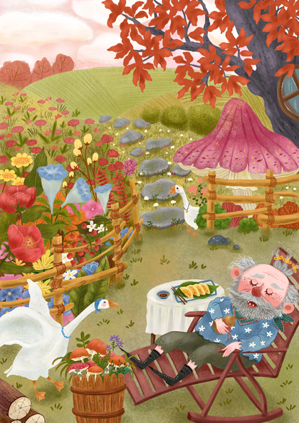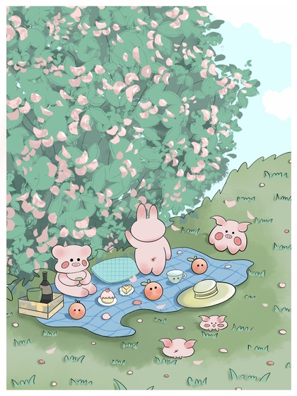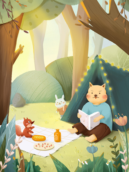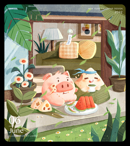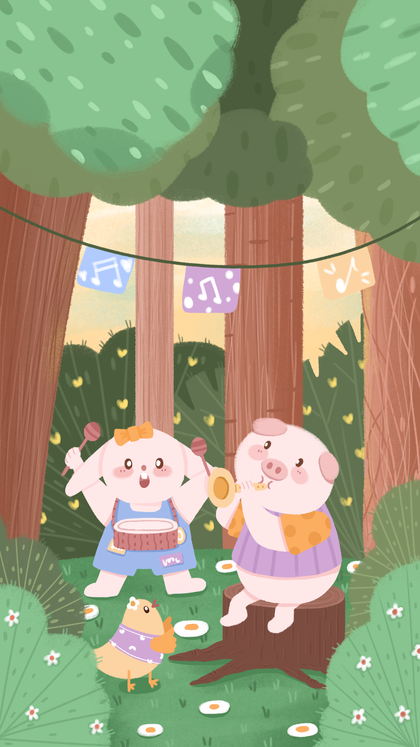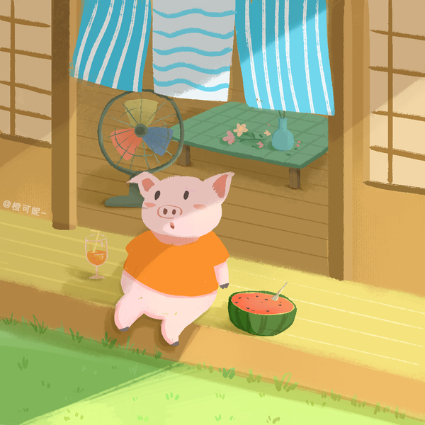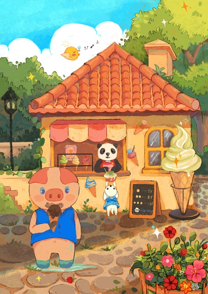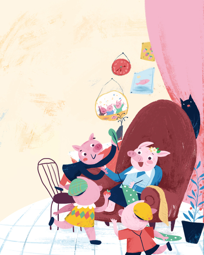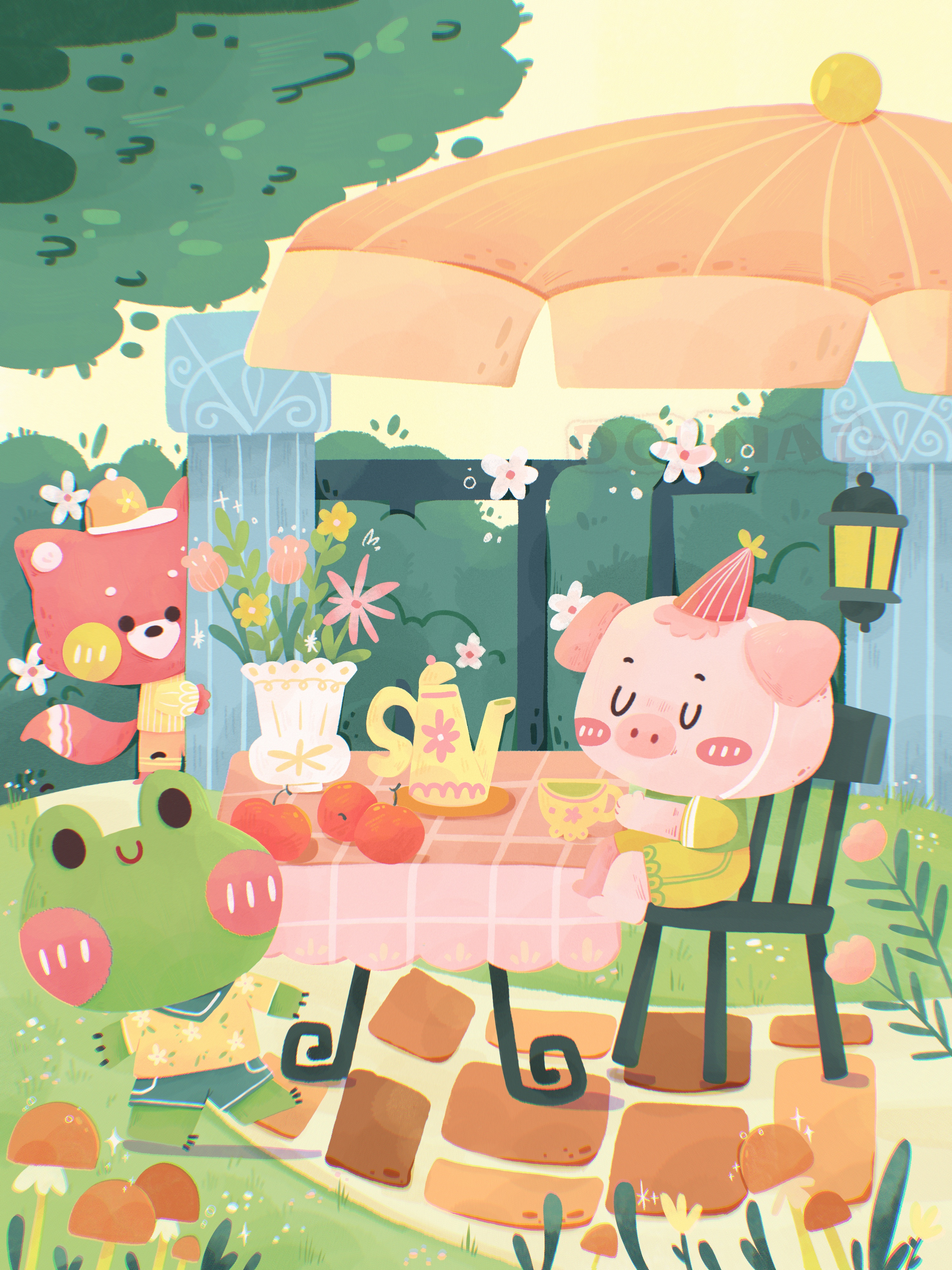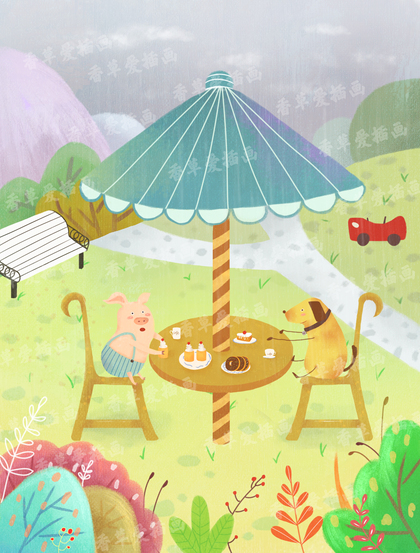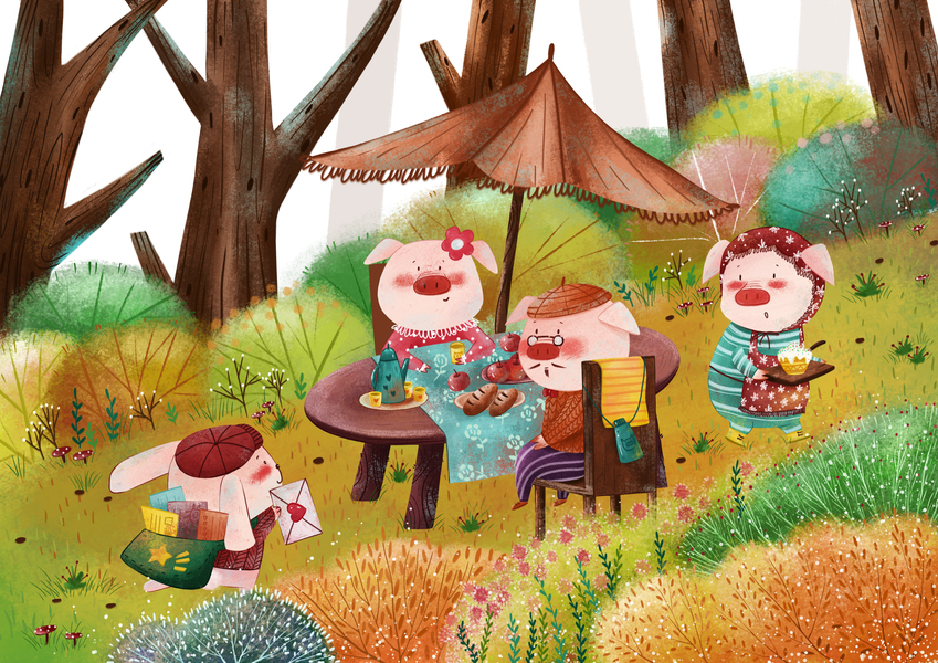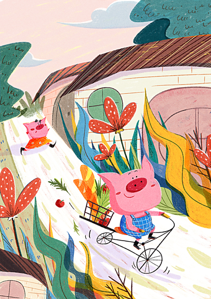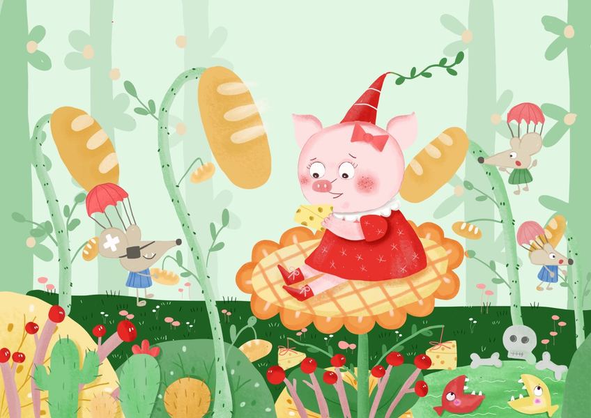 儿童插画绘本原创板绘商业插画之吃奶酪的小猪