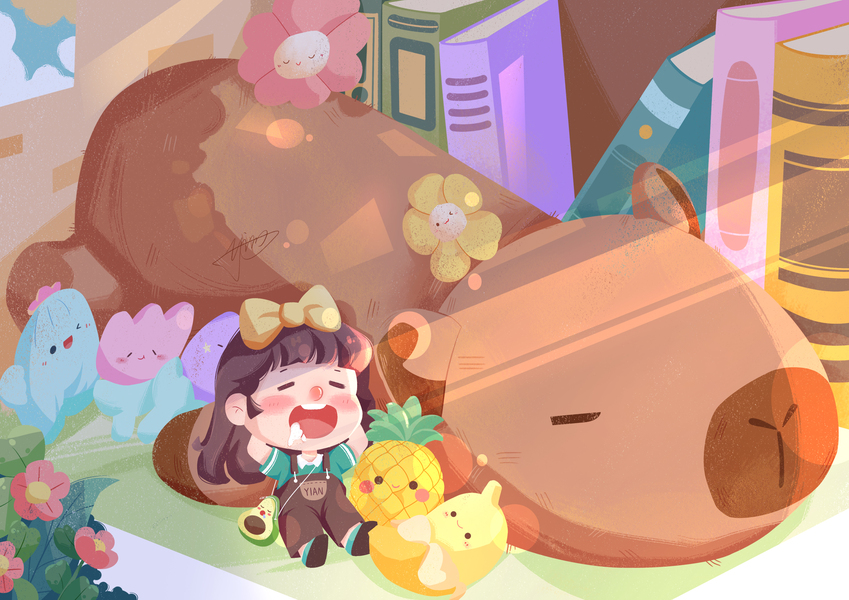 原创治愈系插画-兔咪的发发世界(夏日版)