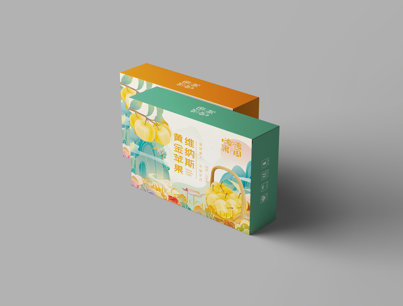 啵啵果园维纳斯黄金苹果插画包装设计水果插画包装设计