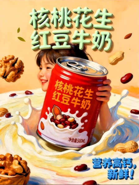 既梦AI设计核桃花生红豆牛奶包装盒设计海报AIGC设计