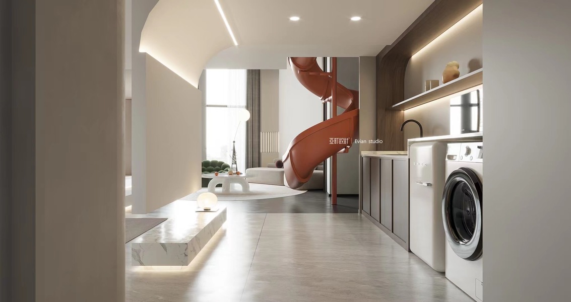 几何空间视觉表现 | loft公寓现代奶油风客餐厅