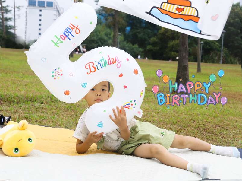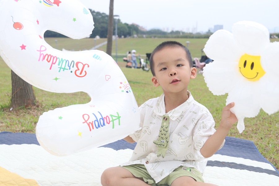 🎈儿童3周岁数字气球写真,草地深林拍照