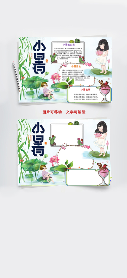 简约小清新二十四节气小暑介绍手抄报Word文档