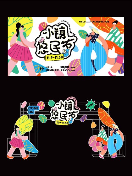品牌生活艺术节市集露营美陈海报主kv摊位活动插画设计