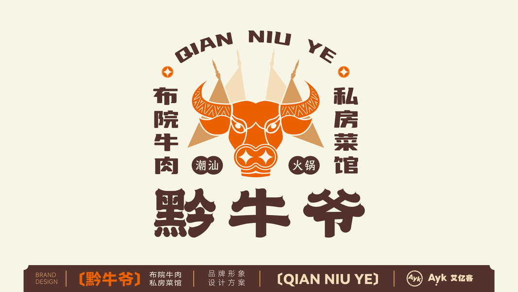 黔牛爷 潮汕牛肉火锅餐饮品牌logo设计 潮汕牛肉火锅