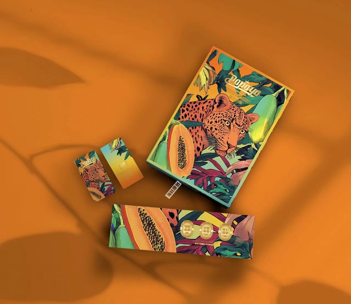 {原创}木瓜水果礼盒连枝带叶写实风格包装设计