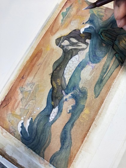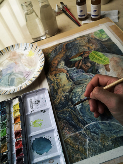 原创水彩画创作《树洞》