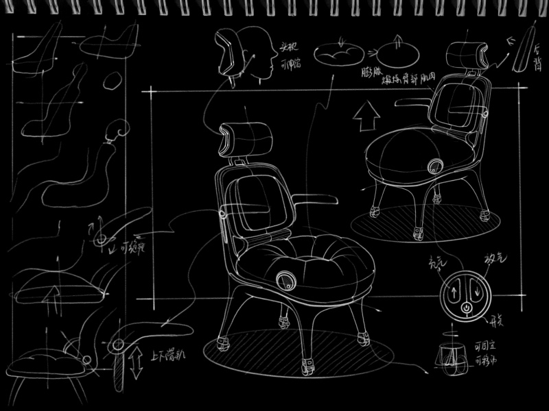 原创产品设计草图方案|智能医疗按摩膨胀包裹椅设计