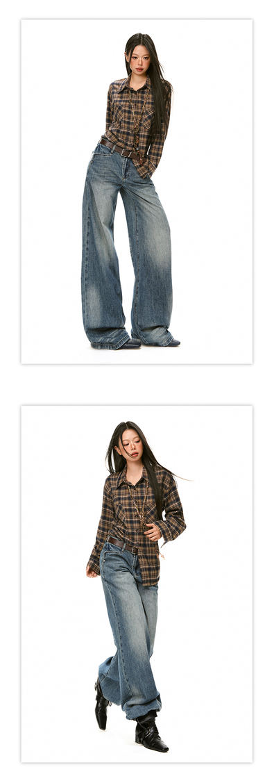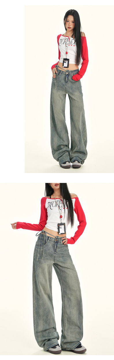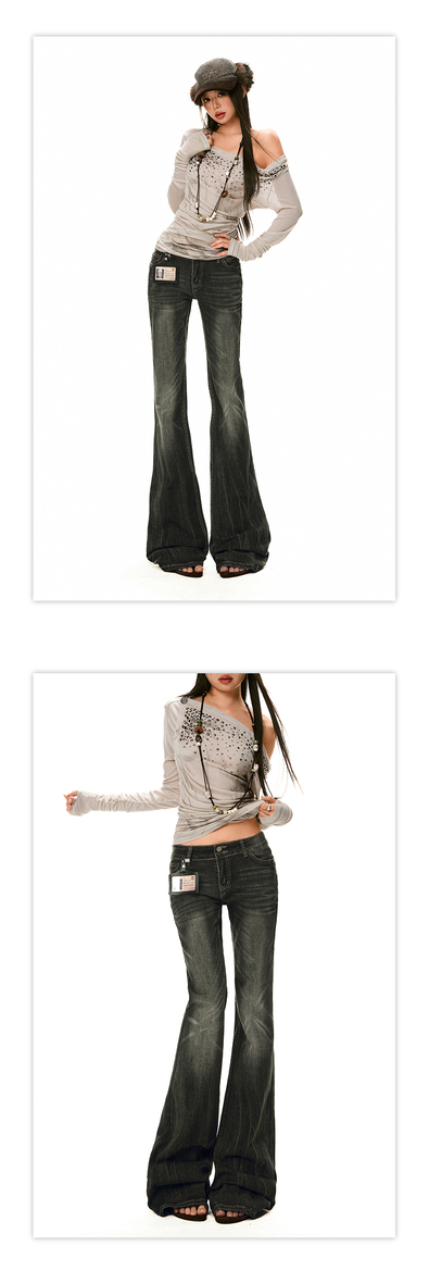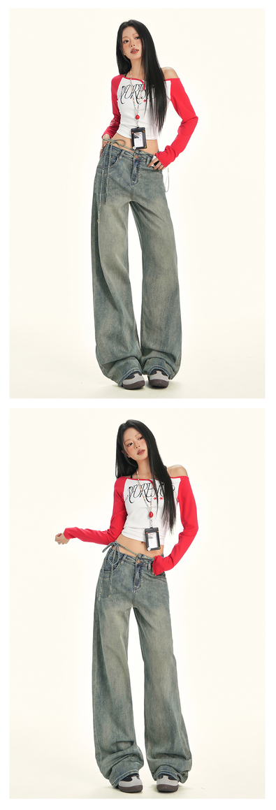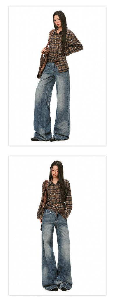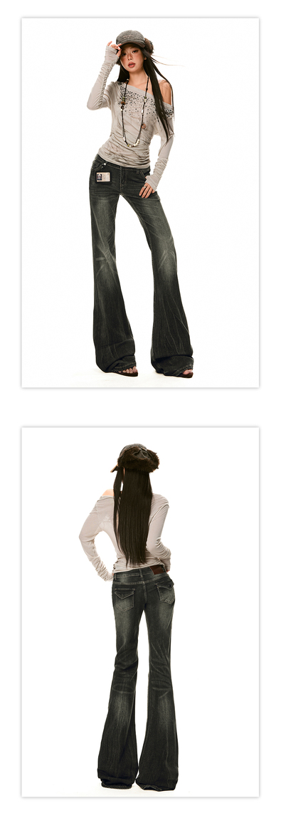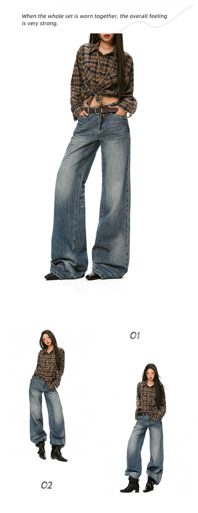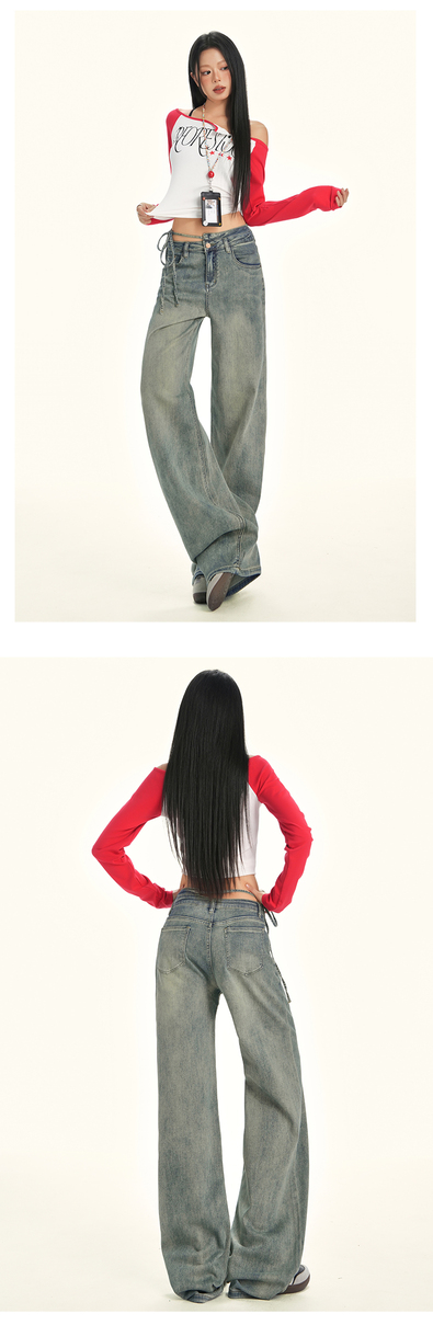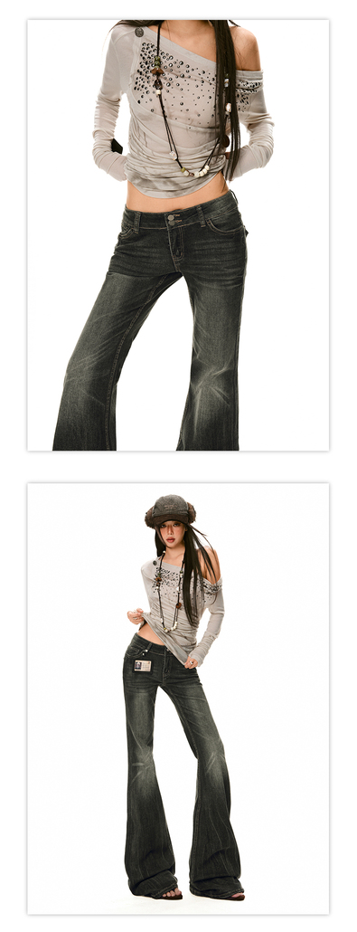 美式辣妹牛仔喇叭裤详情页排版lookbook美式海报拼图