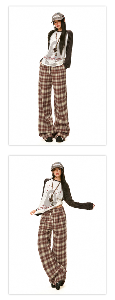 网红加绒格子休闲女裤详情页排版美式lookbook海报拼图