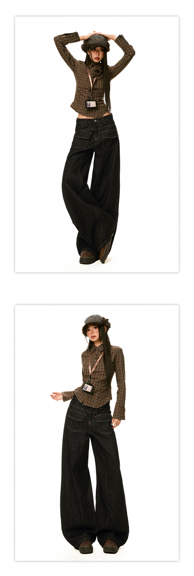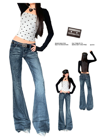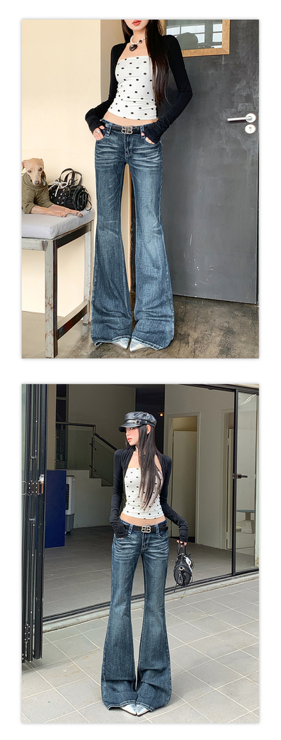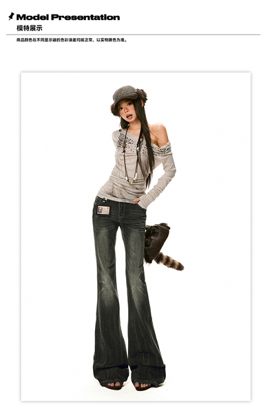 美式辣妹牛仔喇叭裤详情页排版lookbook美式海报拼图