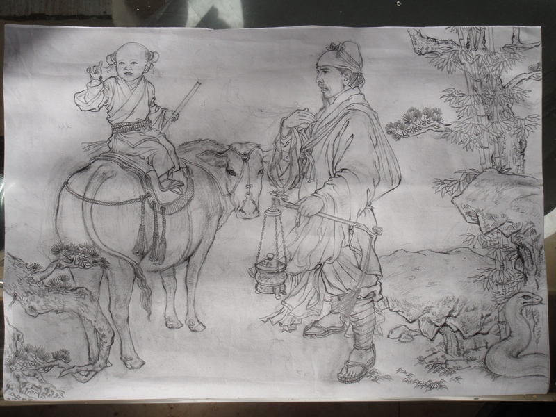手绘水墨插画练习关公游园图【塑新社潘纪坤】