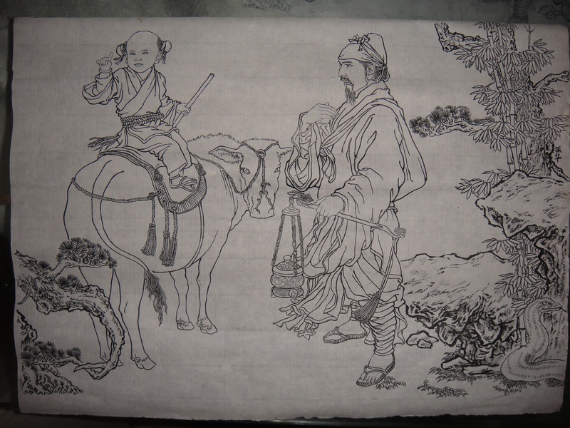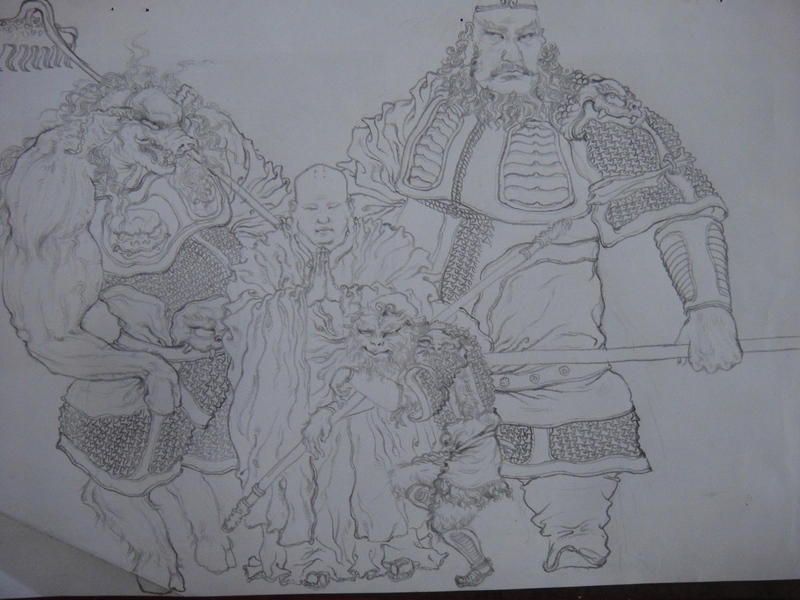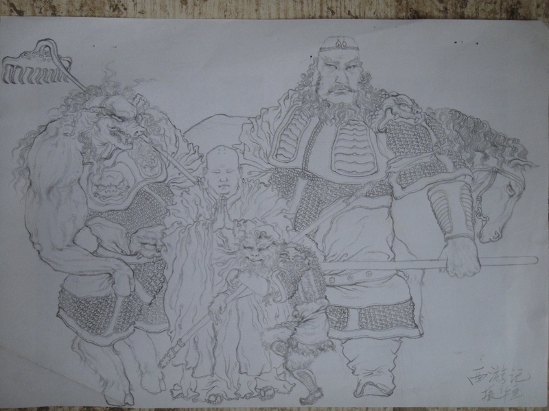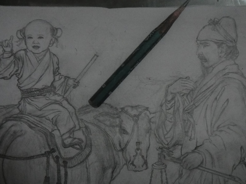 手绘水墨插画练习关公游园图【塑新社潘纪坤】