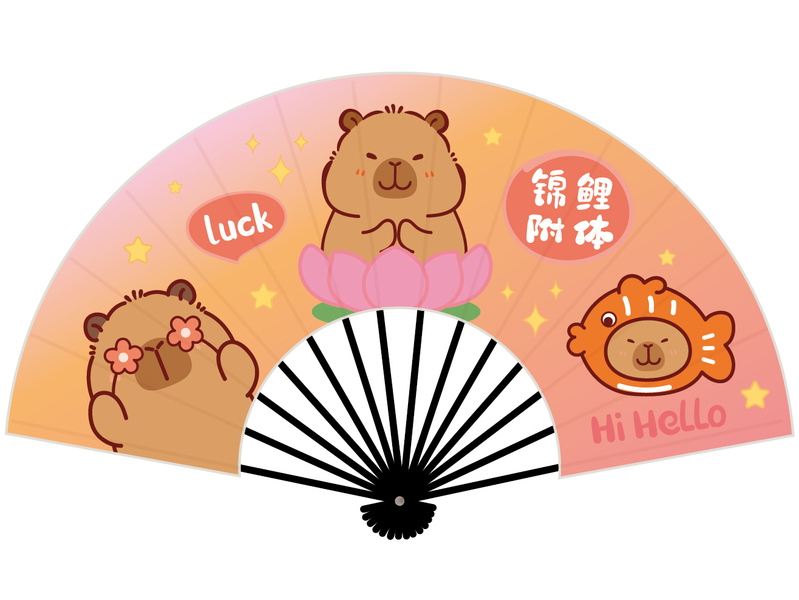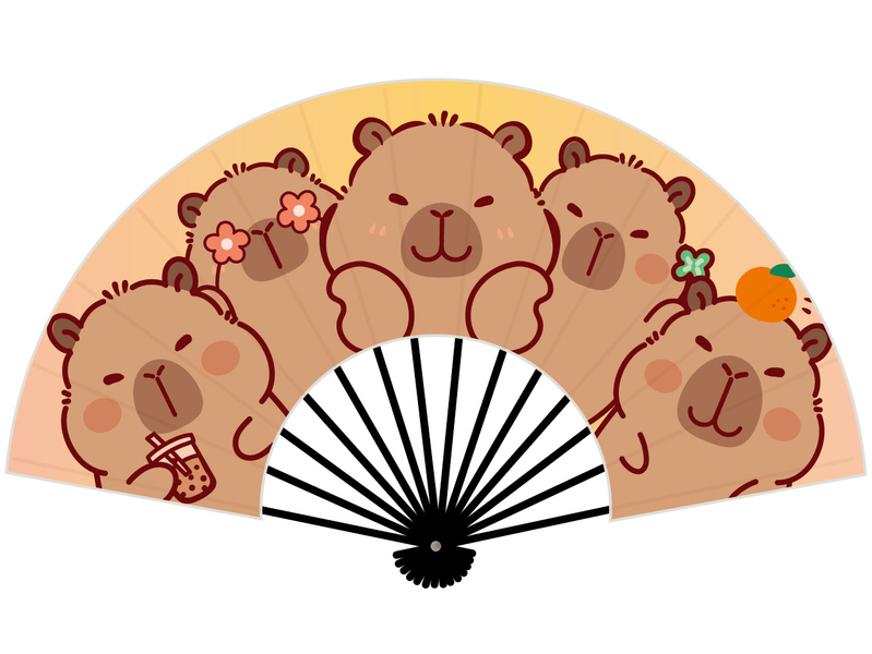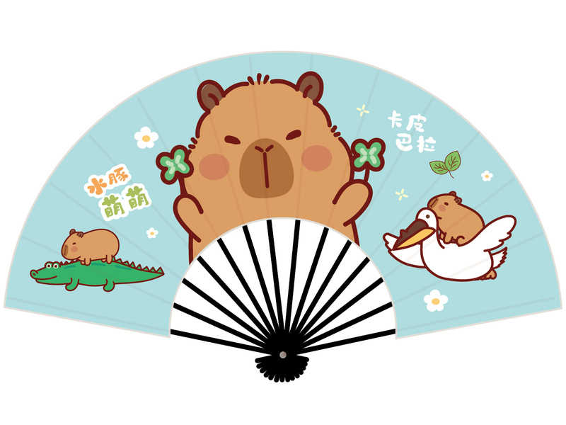 卡皮巴拉插画卡通可爱图片设计扇子设计图