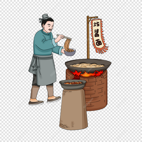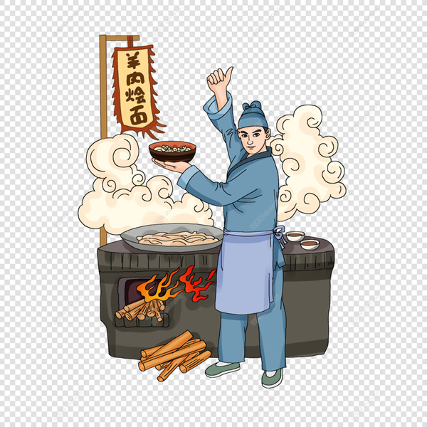 中国风面馆插画免抠素材png-中式面食美食人物-设图网
