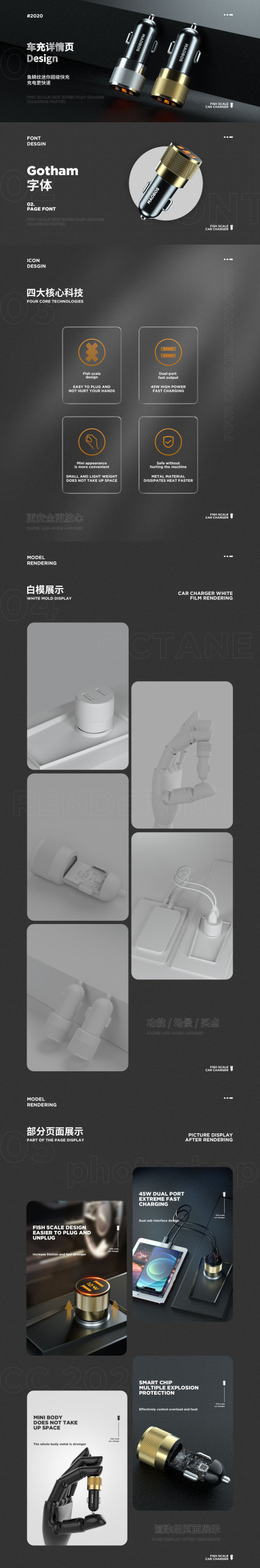 天猫讯电至尊车载充电器详情页 产品渲染 精修