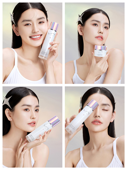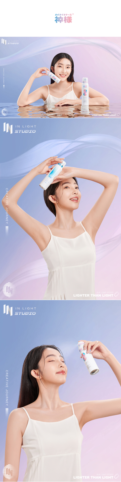 护肤品形象片摄影,化妆品模特图,炫彩背景