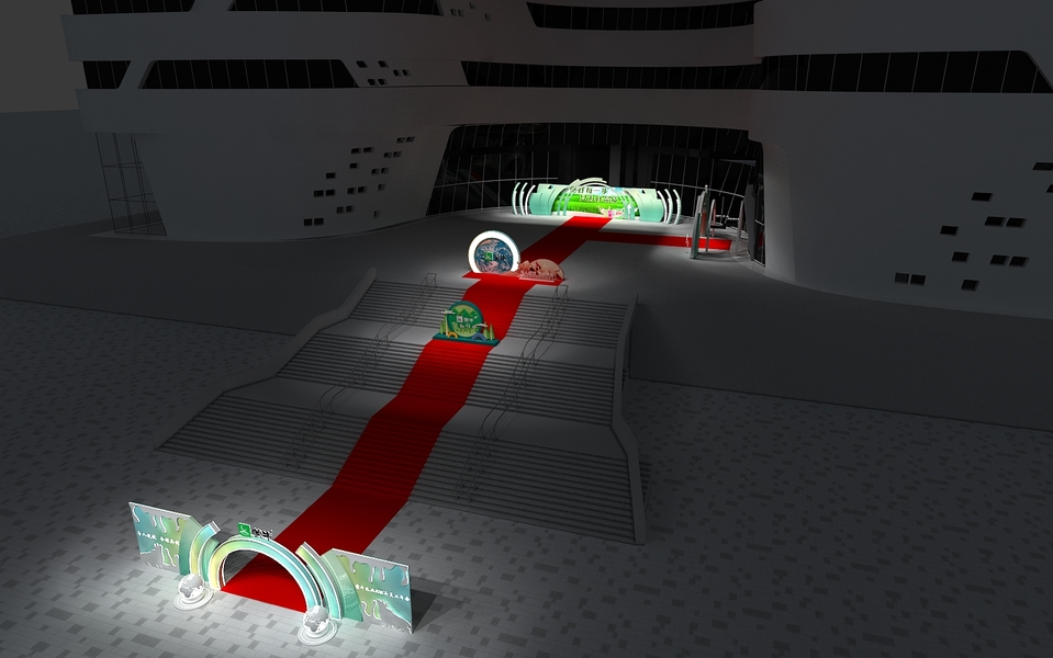 蒙牛年会DP点舞美企业风绿白系3D设计效果图