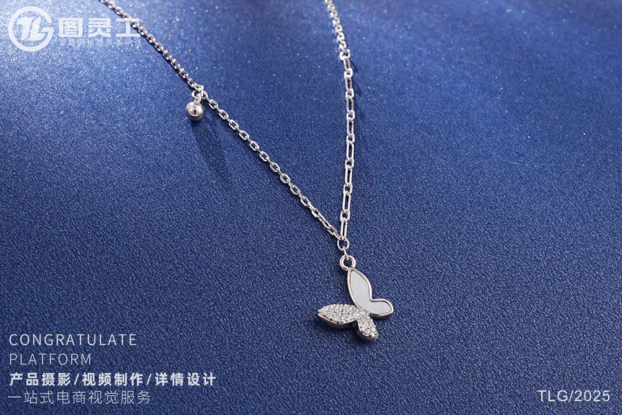 静物摄影丨电商产品拍摄丨珠宝首饰品蝴蝶托帕石银项链
