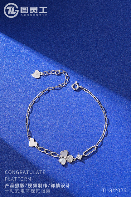 静物摄影丨电商产品拍摄丨珠宝首饰三叶草托帕石银手链