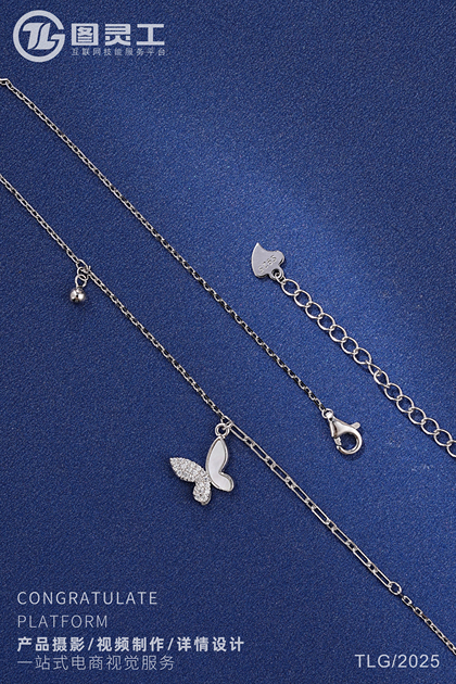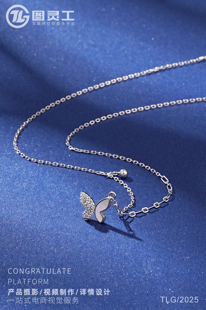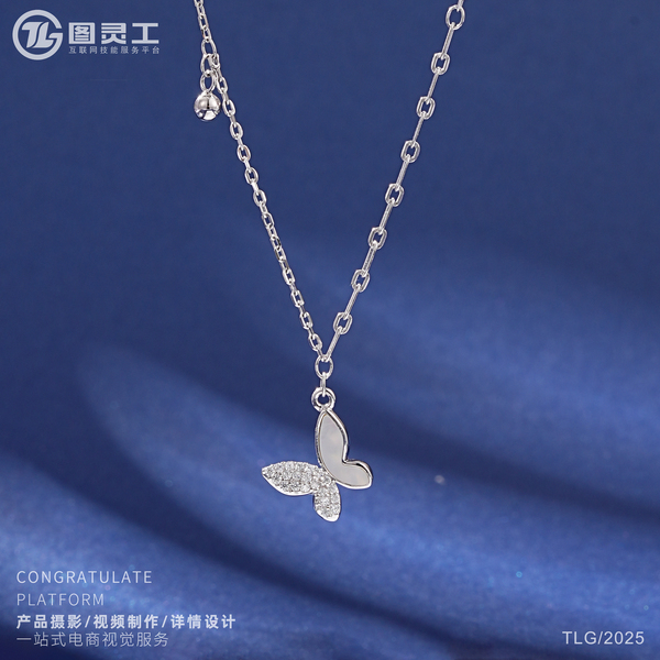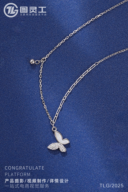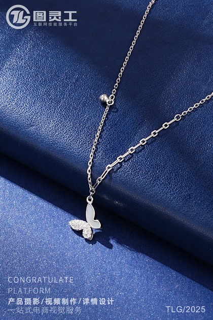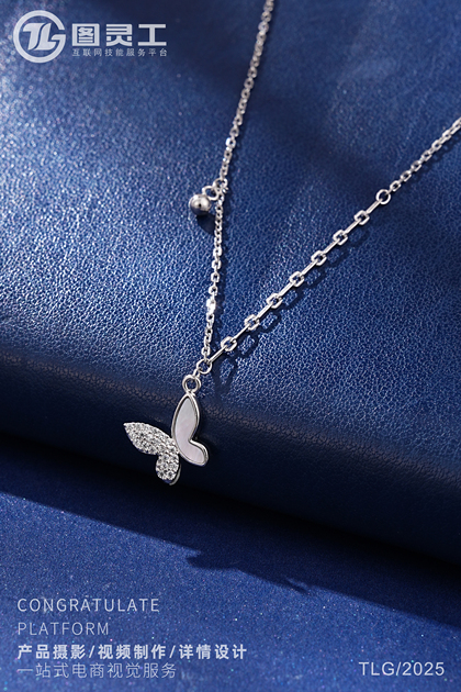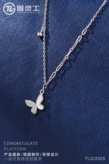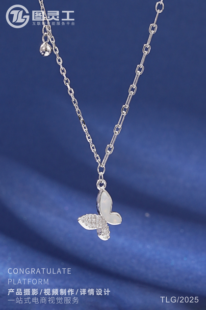 静物摄影丨电商产品拍摄丨珠宝首饰品蝴蝶托帕石银项链